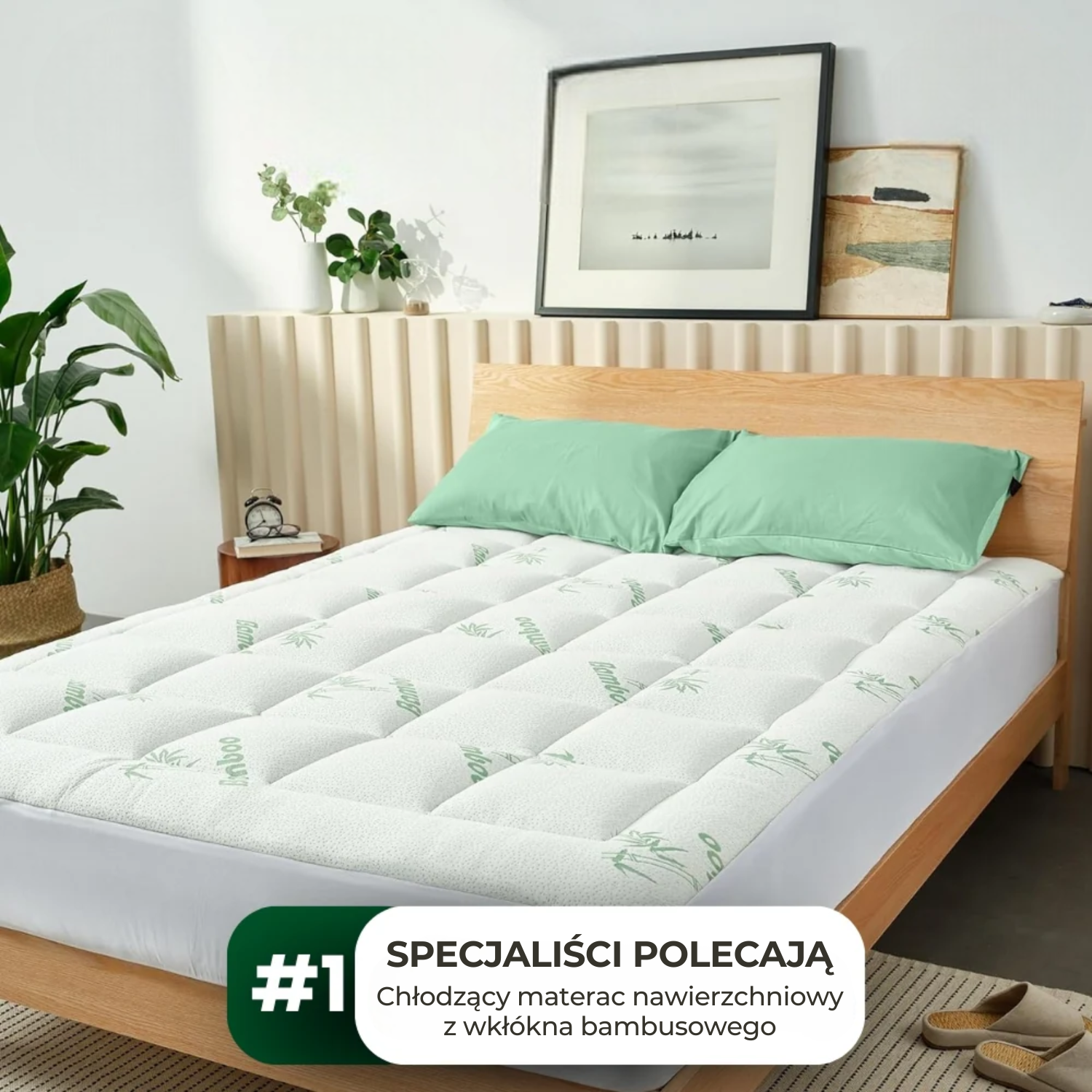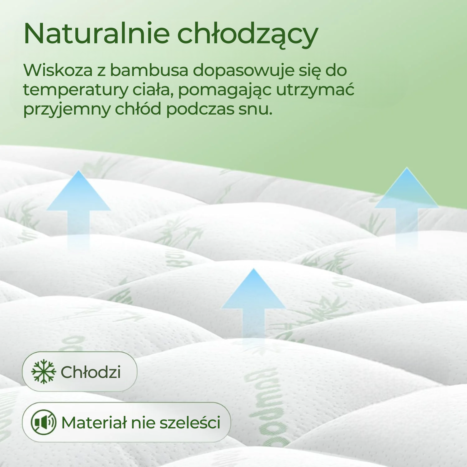 Nasz materac nawierzchniowy z włókna bambusowego został zaprojektowany tak, aby wspierać naturalną cyrkulację powietrza i pomagać utrzymać przyjemny klimat snu - bez przegrzewania i bez uczucia wilgoci.